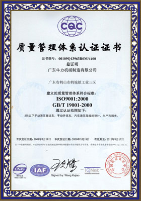 公司先后獲得了ISO9001質(zhì)量管理體系認(rèn)證,歐洲CE/GS認(rèn)證,SGS國(guó)際認(rèn)證服務(wù)公司認(rèn)證審核,國(guó)家質(zhì)監(jiān)總局頒發(fā)的特種設(shè)備制造許可證,廣東省高新技術(shù)企業(yè)認(rèn)證,廣東省工程技術(shù)研究中心等。
