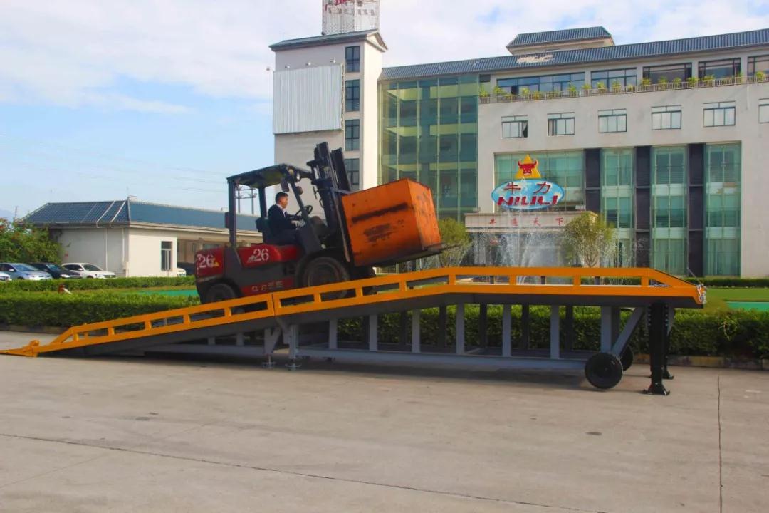 折疊式登車橋是與叉車配合使用的貨物裝卸輔助設(shè)備,在地面和車輛之間搭起橋梁,可根據(jù)汽車車廂的高低調(diào)節(jié)高度,叉車可以直接通過它駛?cè)胲噹麅?nèi)進行貨物的裝卸作業(yè)。