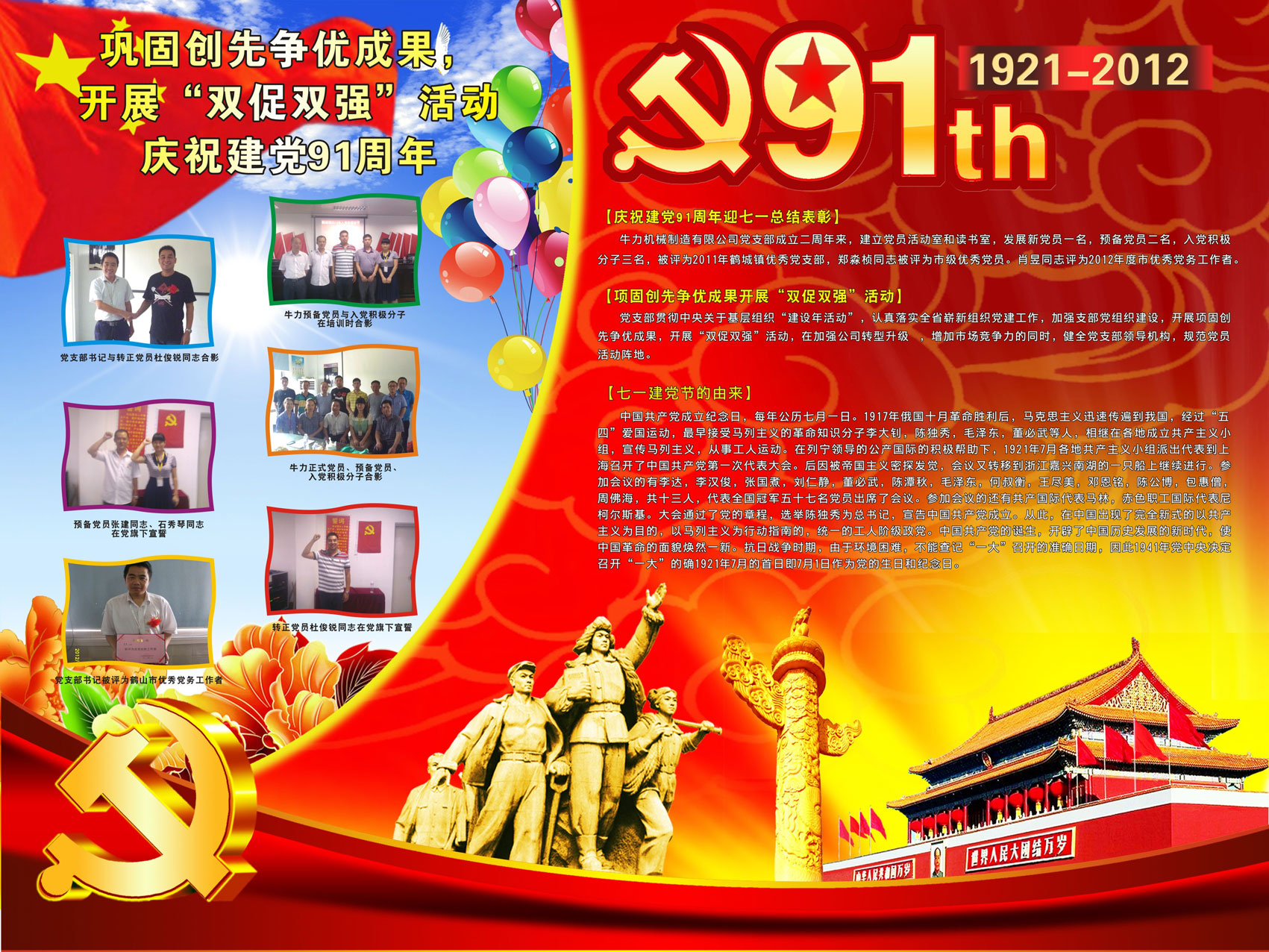 牛力機(jī)械制造有限公司黨支部成立二周年來(lái),建立黨員活動(dòng)室和讀書(shū)室,發(fā)展新黨員一名,預(yù)備黨員二名,入黨積極分子三名,被評(píng)為2011年鶴城鎮(zhèn)優(yōu)秀黨支部,鄭淼楨同志被評(píng)為市級(jí)優(yōu)秀黨員。肖昱同志被評(píng)2012年度市優(yōu)秀黨務(wù)工作者。