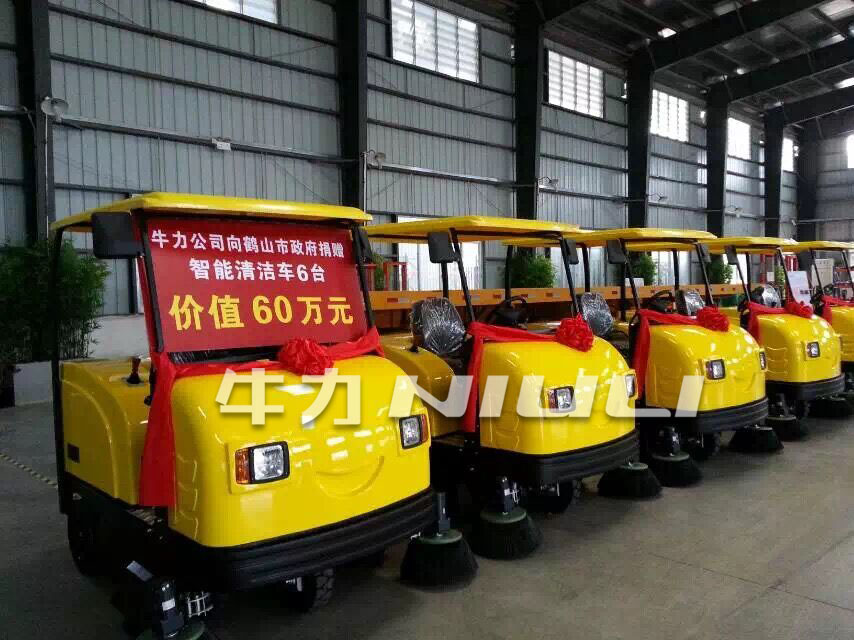 簽約儀式后,牛力機(jī)械向鶴山市捐贈(zèng)6輛智能清潔車。
