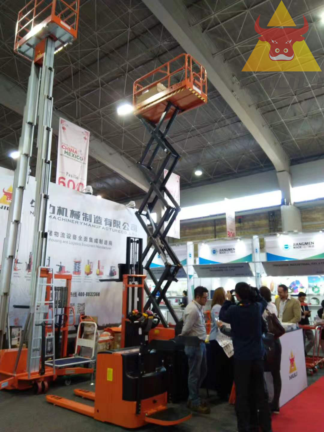 牛力:墨西哥中國(guó)投資交易會(huì)現(xiàn)場(chǎng) 華南物流裝備制造大型企業(yè)——牛力機(jī)械攜眾多產(chǎn)品參加本次展會(huì),展出產(chǎn)品包括電動(dòng)搬運(yùn)車(chē)、電動(dòng)堆高車(chē)、高空作業(yè)平臺(tái)等系列產(chǎn)品。