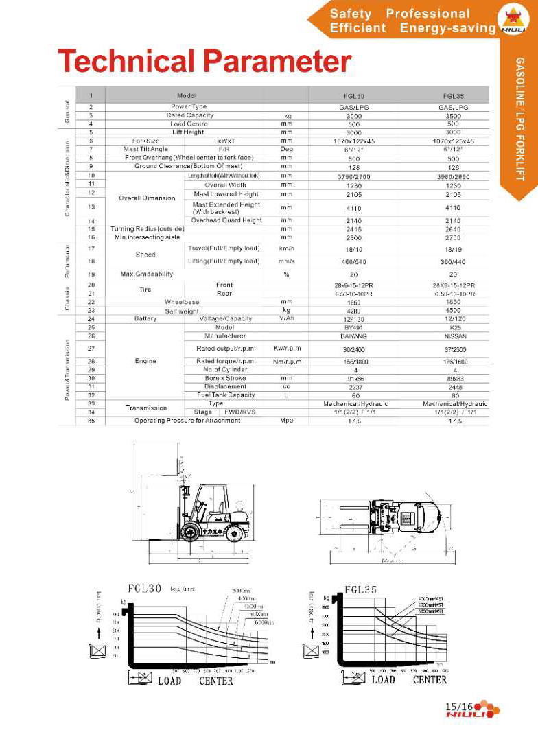 | Model | Unit | FGL30 | FGL35 | ||