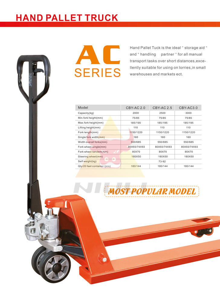 The Hand Parllet Tuck is the ideal " storage aid" and " handling partner " for all manual transport tasks over short distances,exce- llently suitable for use on lorries ,in small warehouses and markets ect .